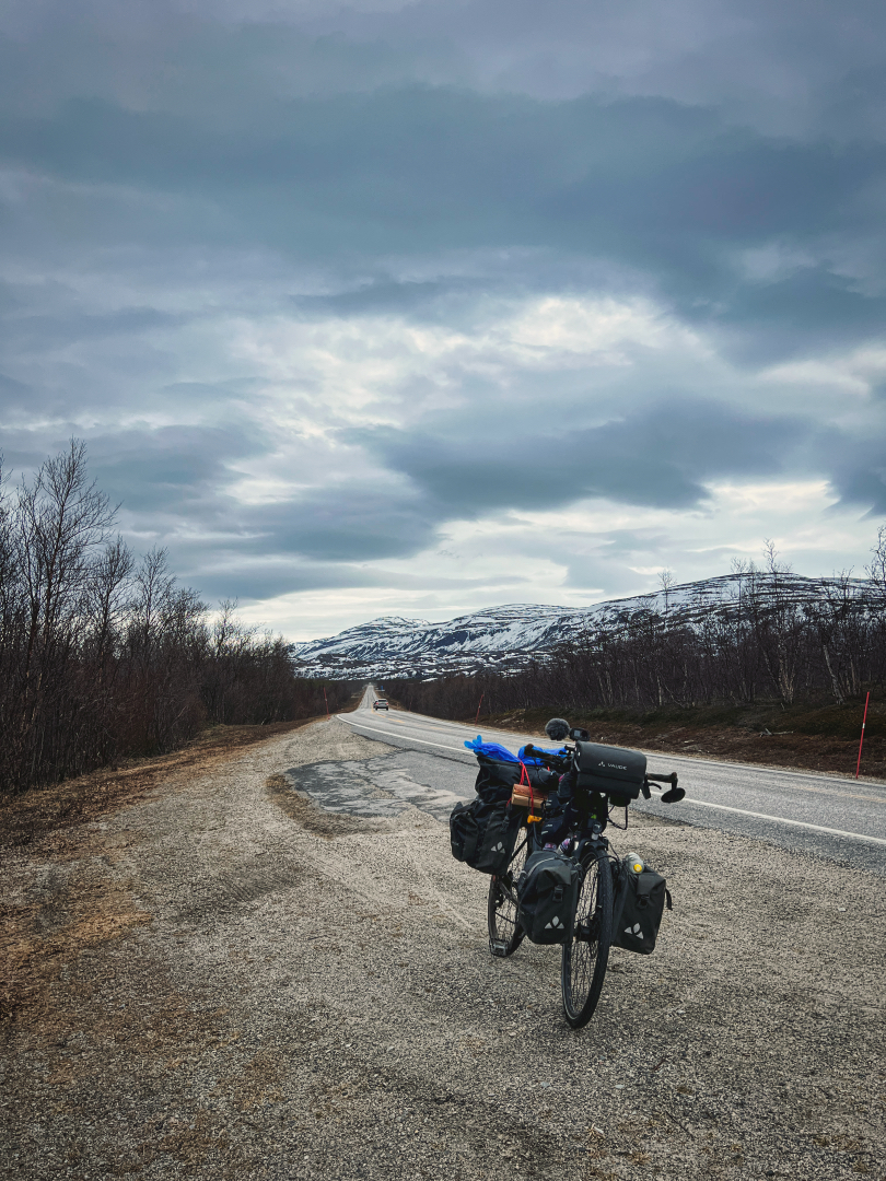 In den ersten Stunden des Tages konnte ich den Blick auf die Landschaft kaum fassen. Sie war so schön und zugleich so brutal in ihrer Weite. Aber der Weg, der vor mir lag, war nicht minder herausfordernd: ständiges Auf und Ab, starker Gegenwind – und das Gefühl, als würde der Weg einfach kein Ende nehmen. Trotzdem ließ ich mich nicht entmutigen. Immerhin war ich auf der finalen Etappe meiner Reise – dem Nordkap so nah.