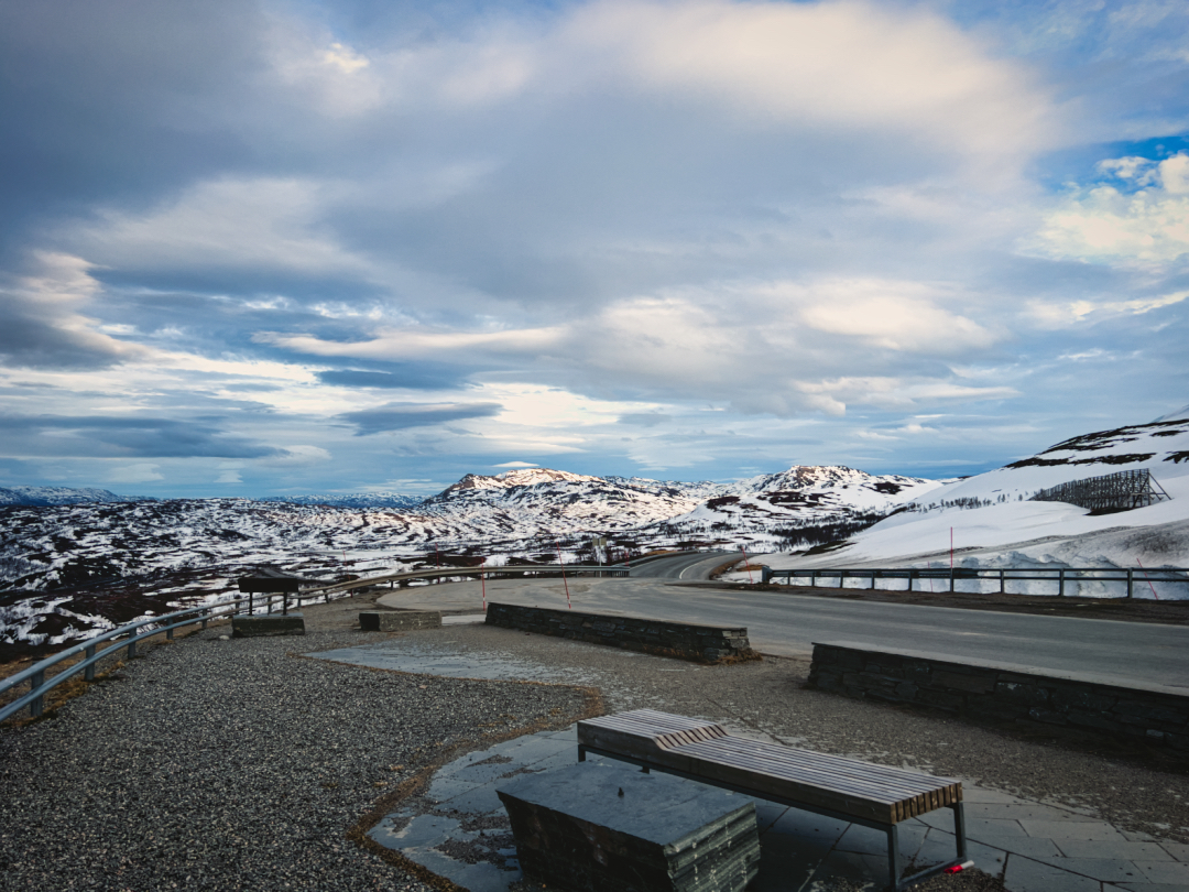 Die Nacht war weniger optimal. Direkt neben einem Parkplatz schlug ich mein Lager auf – überall lag noch Schnee, also blieb mir kaum eine andere Wahl. Immerhin wurde ich gewarnt: Weiter vorne gäbe es gar keine Übernachtungsmöglichkeiten mehr. Also machte ich das Beste daraus. Die Straße war nah, ab und zu rasten Autos vorbei, aber nach all den Tagen unterwegs störte mich das kaum noch. Ich legte mich hin und hoffte auf eine halbwegs ruhige Nacht.
