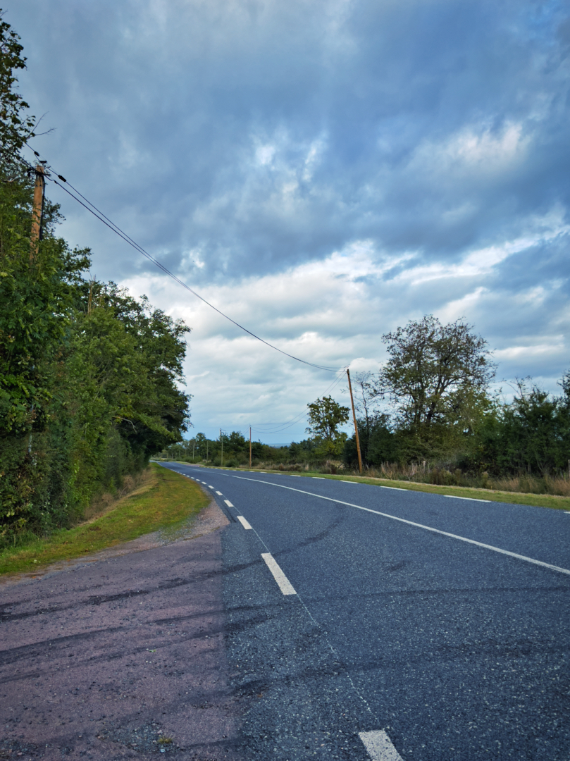 Mit neuer Energie ging es weiter, doch die Strecke wurde anspruchsvoller. 80 Kilometer bis zur nächsten Stadt, zahlreiche Höhenmeter und das Wetter spielte auch nicht so recht mit. Ein Klassiker: Gerade ausgecheckt, beginnt es zu regnen. Aber aufhalten ließ ich mich nicht. In den nächsten Stunden kämpfte ich mich durch steile Anstiege, kräftigen Gegenwind und rutschige Sandwege. Städte entpuppten sich als stressig, und das französische Verkehrschaos machte es nicht leichter. Immerhin: Ich nutzte die Gelegenheit, meinen Sattel neu einzustellen – eine längst überfällige Maßnahme, die sofort für eine bessere Kraftübertragung sorgte.