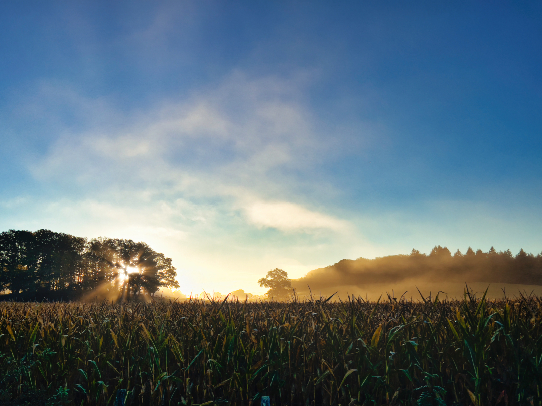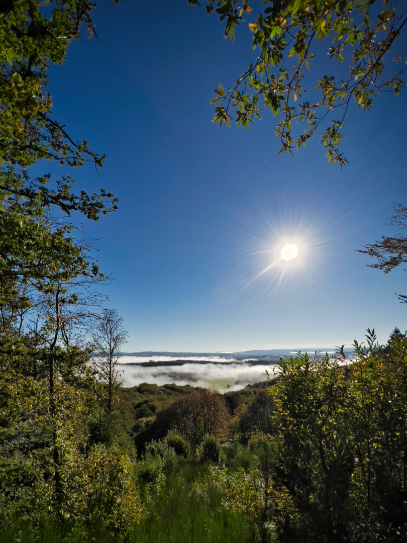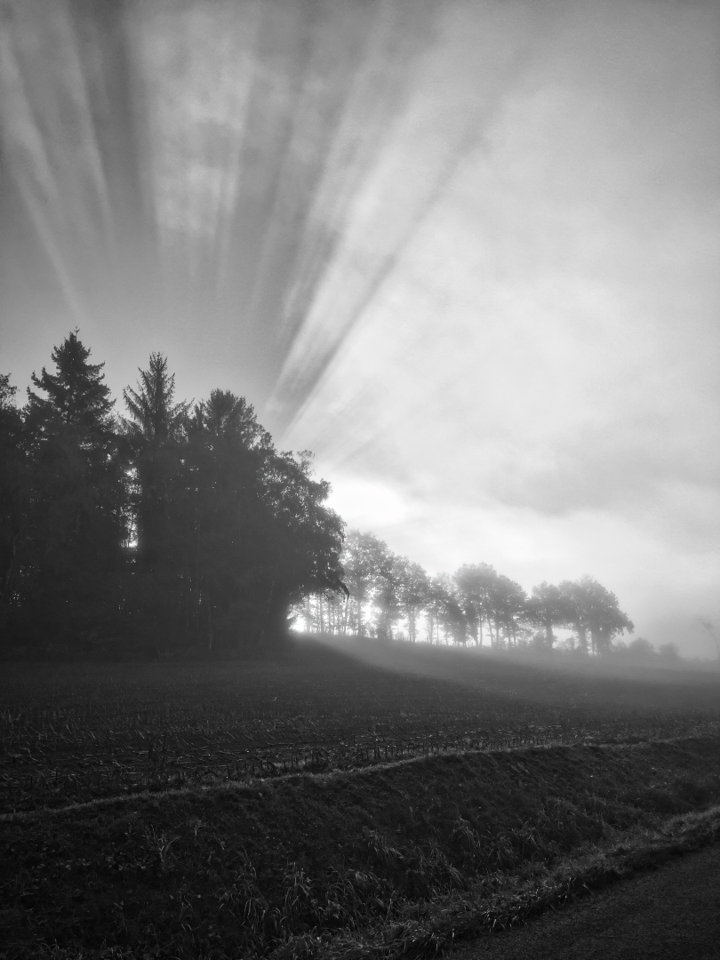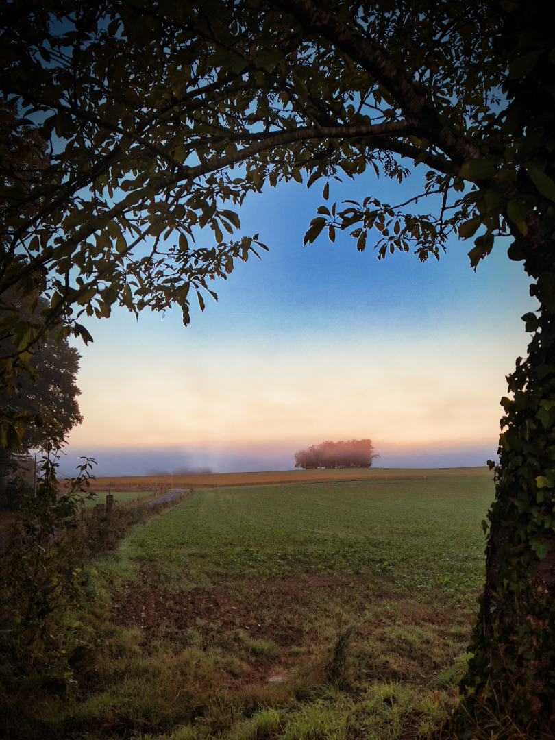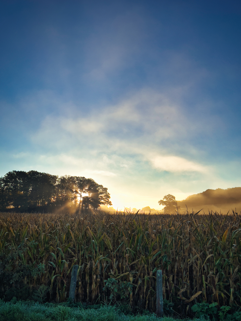 Am nächsten Morgen war alles nass vom Tau, und die Luft war kalt. Doch als die Sonne langsam über die Landschaft stieg, bot sich mir ein atemberaubender Anblick: Nebelschwaden lagen über den Feldern, und die ersten Sonnenstrahlen tauchten die Szenerie in ein goldenes Licht. Ich konnte nicht anders, als immer wieder anzuhalten, Fotos zu machen und einfach diesen Moment zu genießen.