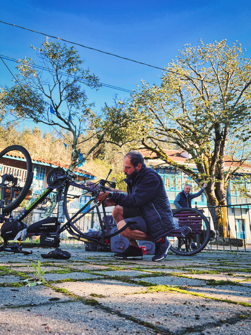 Am Morgen entschied ich, in Ruhe meinen Kaffee zu trinken und den Morgen in aller Ruhe zu starten, bevor ich weiterfuhr. Nach einigen Kilometern bemerkte ich seltsame Geräusche an meinem Fahrrad. Die Hinterbremse schleifte, und bei genauerem Hinsehen stellte ich fest, dass die Beläge fast völlig abgenutzt waren. Also hieß es: Werkzeug auspacken und Bremsen wechseln. Eine lästige, aber notwendige Arbeit, die mich wieder ein Stück Zeit kostete.