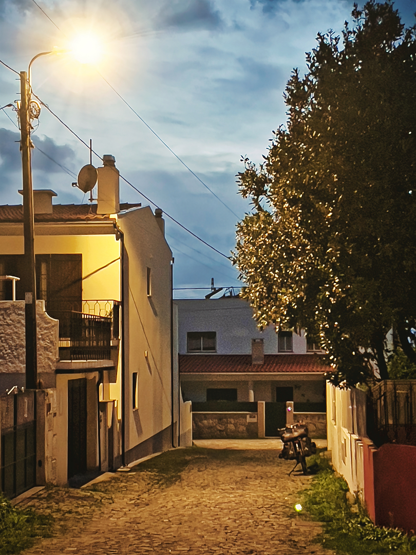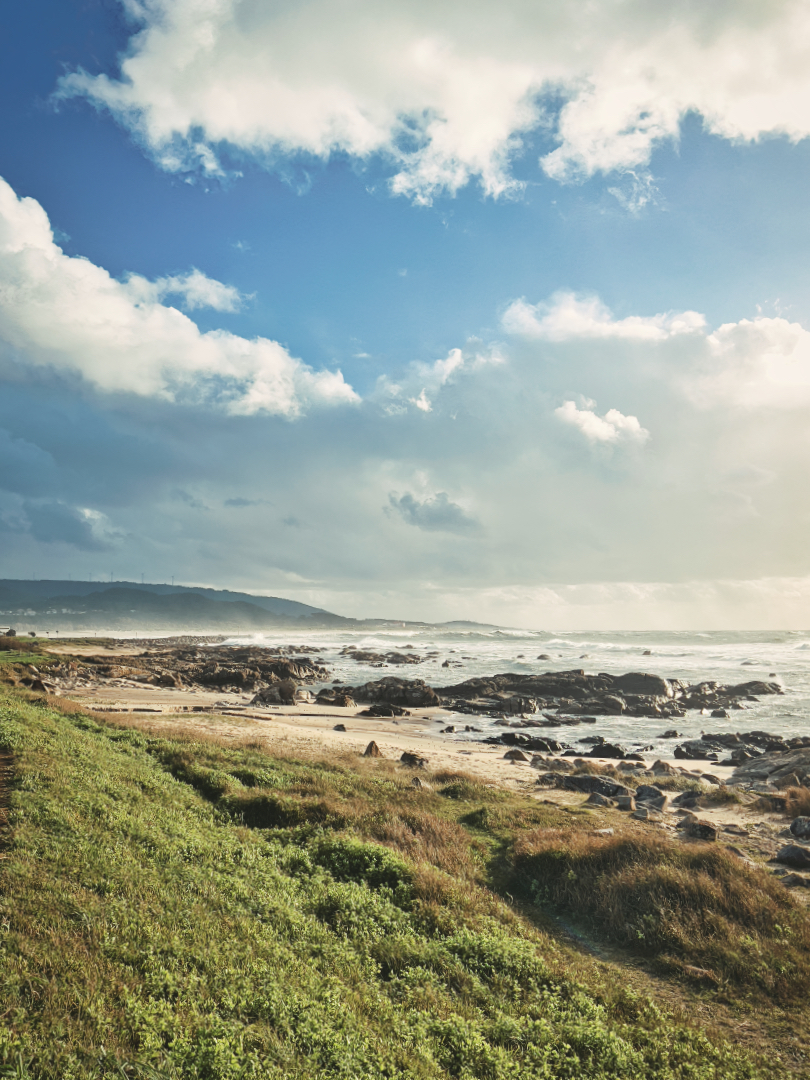 Doch kurz vor der Grenze zog der Himmel plötzlich wieder zu. Ich wartete an der Fähre, die mich über den Fluss bringen sollte. Kaum waren meine Sachen an Bord verstaut, begann es in Strömen zu regnen. Natürlich hatte ich meine Regenhose nicht angezogen, sodass ich wieder einmal komplett durchnässt war. In Portugal angekommen, zog ich mich sofort um, während die Sonne sich schon wieder blicken ließ – ein Sinnbild für diese Reise voller unberechenbarer Wetterwechsel.