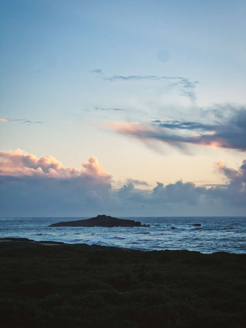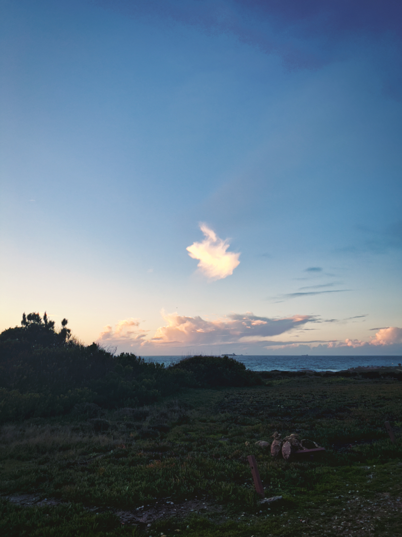 Nach ein paar Kilometern gönnte ich mir eine Pause. In einem kleinen Supermarkt kaufte ich mir Frühstück und trank einen starken Kaffee im angrenzenden Café. Die Aussicht war atemberaubend, mit dichten Wolken, die sich über das hügelige Land schoben. Während mein Zelt in der Morgensonne trocknete, genoss ich mein Essen und überlegte, wo ich in Lissabon unterkommen könnte. Vielleicht ein Hostel oder doch lieber ein Campingplatz?