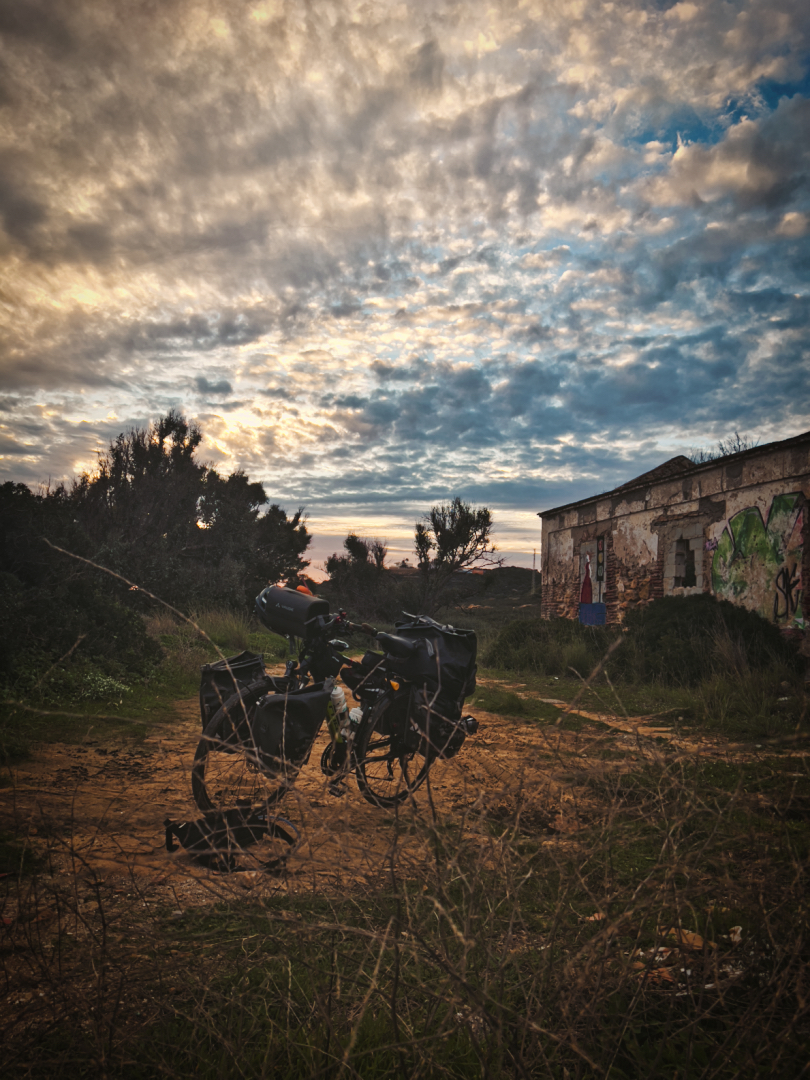 Die spanische Küste hatte mich müde gemacht. Kilometer um Kilometer führte der Weg entlang stark befahrener Straßen. Ich sehnte mich nach etwas Abgeschiedenheit, nach Ruhe. Immerhin fand ich einen schönen Platz für die Nacht: direkt neben einer alten Ruine mit Blick aufs Meer. Ich hoffte auf eine erholsame Nacht.