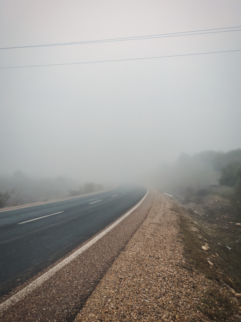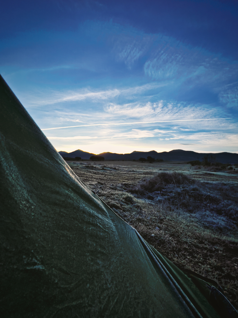 Die Reise ging weiter, doch die Herausforderungen ließen nicht lange auf sich warten. Ich campierte in einer Olivenbaum-Plantage, doch die Nacht wurde eisig kalt. Bei Temperaturen nahe dem Gefrierpunkt zog ich meinen Schlafsack enger um mich, während in der Ferne der Verkehr rauschte. Am Morgen war das Zelt von einer dicken Eisschicht überzogen. Trotz der Kälte machte ich mich früh auf den Weg, trank meinen Kaffee und startete in den nächsten Tag.
