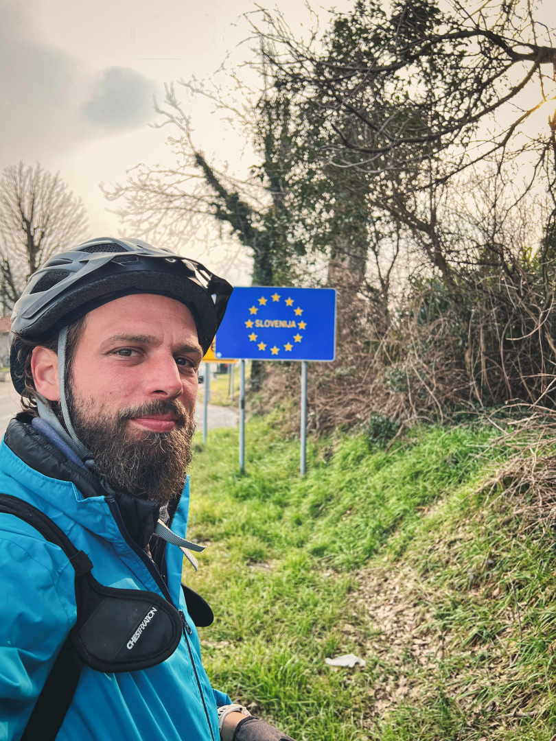 Der letzte Abschnitt in Italien war wenig spektakulär: Industriegebiete, Landstraßen voller LKWs. Doch dann endlich – Slowenien! Die Grenze war kaum als solche erkennbar, doch ich entdeckte das Schild und hielt kurz an. Mein siebtes Land auf dieser Reise – und das erste, in dem ich noch nie zuvor gewesen war. Ein aufregender Moment!