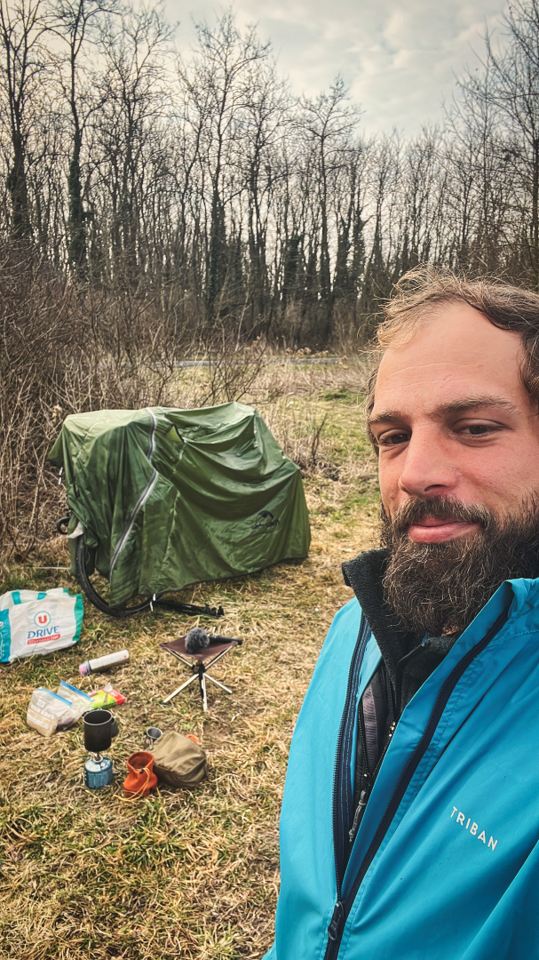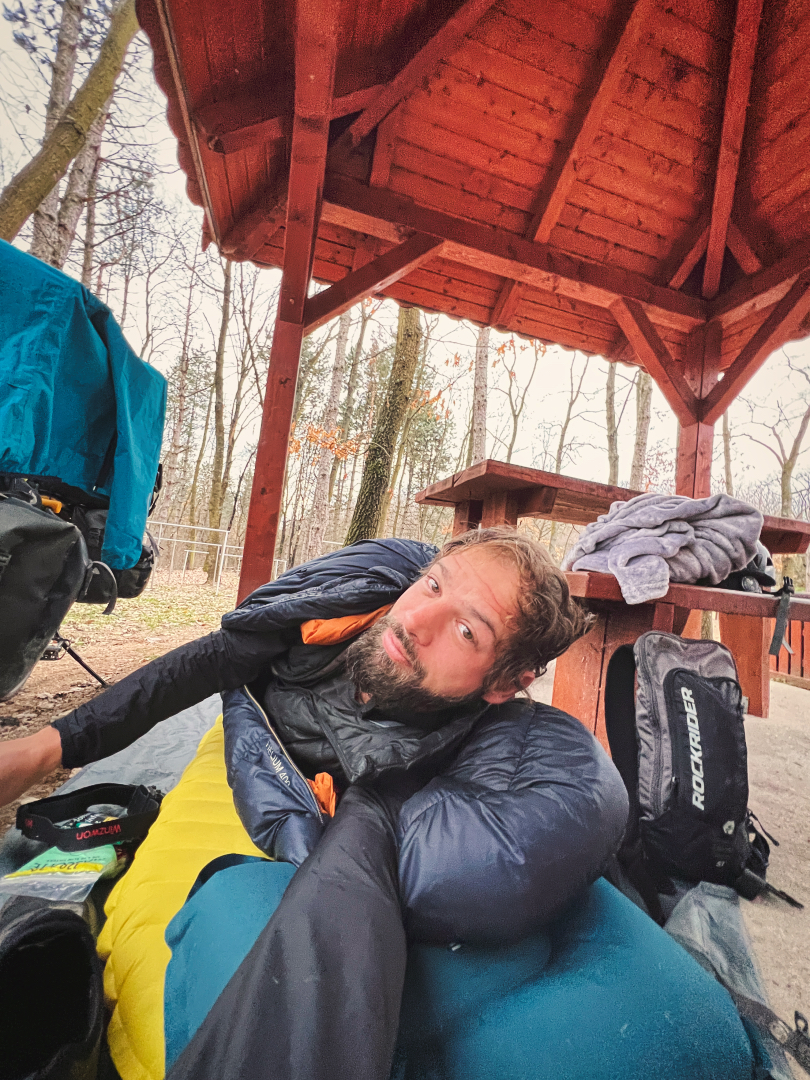 Am Abend waren es schließlich 106 Kilometer geworden. Ich rollte mich in meinen Schlafsack und hoffte, dass die Erkältung nicht schlimmer wurde. Doch in der Nacht wurde meine Nase immer dichter. Der nächste Morgen begann mit verstopften Atemwegen, aber es half nichts – ich musste weiter. Doch erst einmal musste ich mir ungarisches Geld besorgen, denn ohne Bargeld war es schwierig, einen Kaffee zu bekommen.