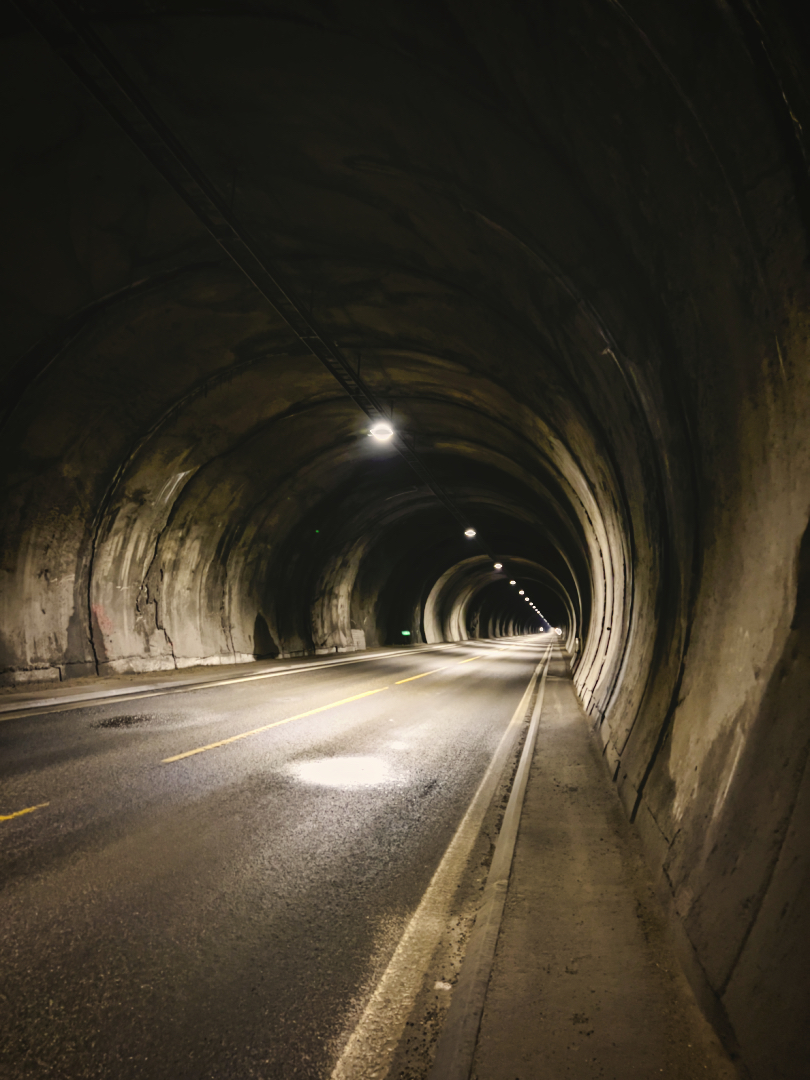Das Gefühl, die ersten Blicke auf das offene Meer zu werfen, war überwältigend. Ich war fast da – das Nordkap! Doch das letzte Stück der Reise ließ mich noch nicht los: der Nordkap-Tunnel. Der Tunnel, der so viele schon vorher als „Endgegner“ bezeichnet hatten, stand mir nun bevor. 3,4 Kilometer, 9% Steigung – und ich wusste, dass ich mit dem Fahrrad kaum vorankommen würde. Also blieb mir nichts anderes übrig, als zu schieben.