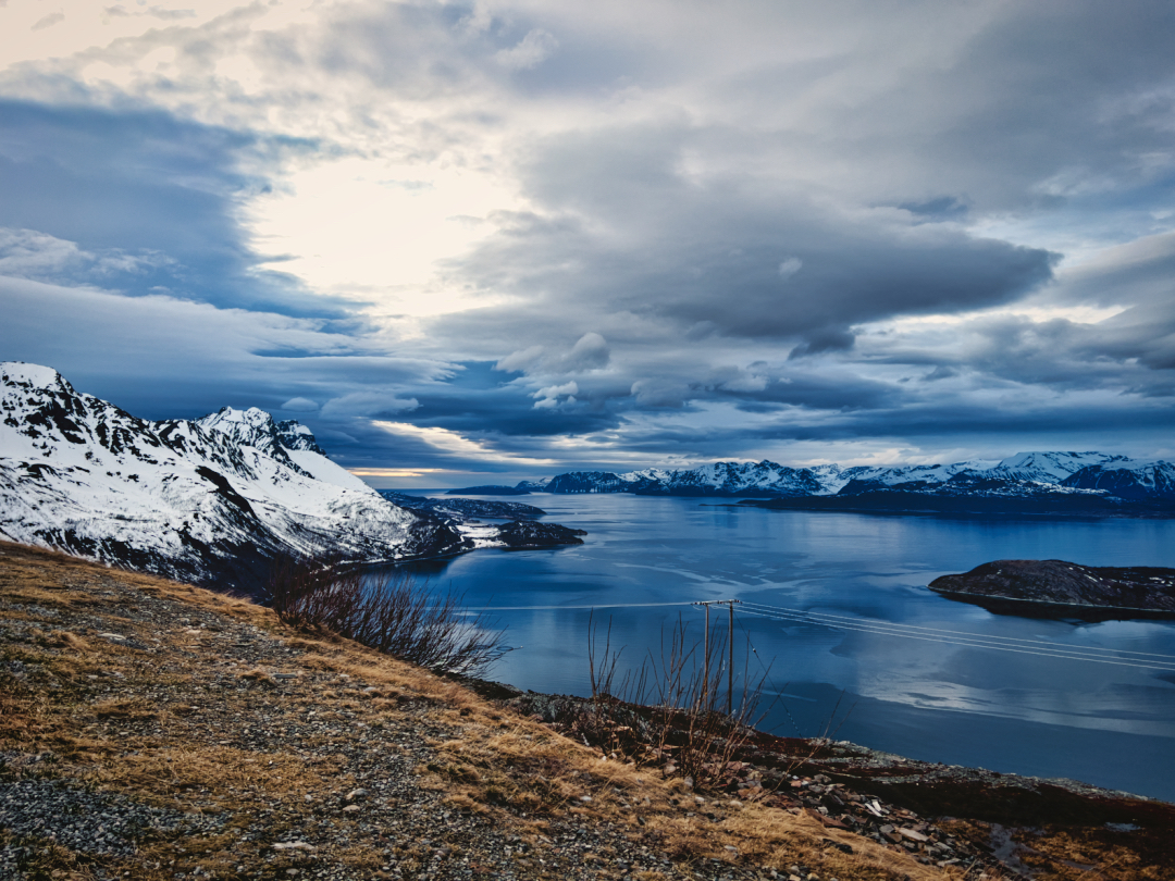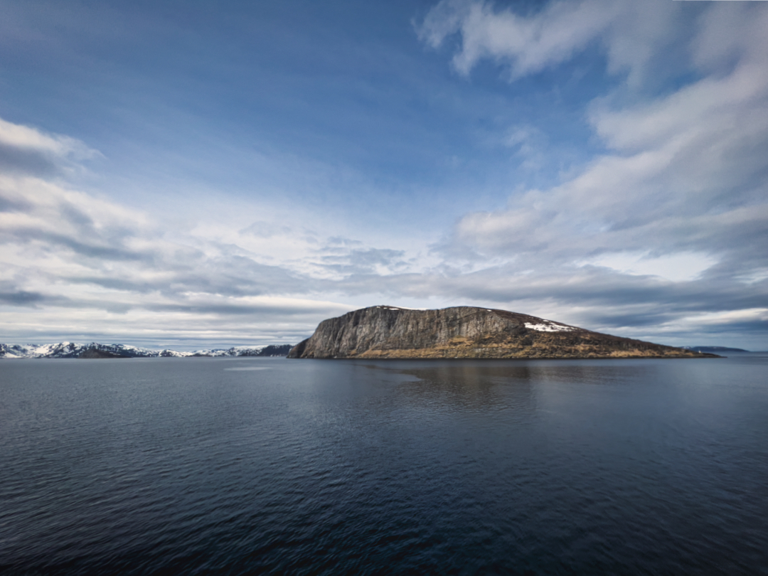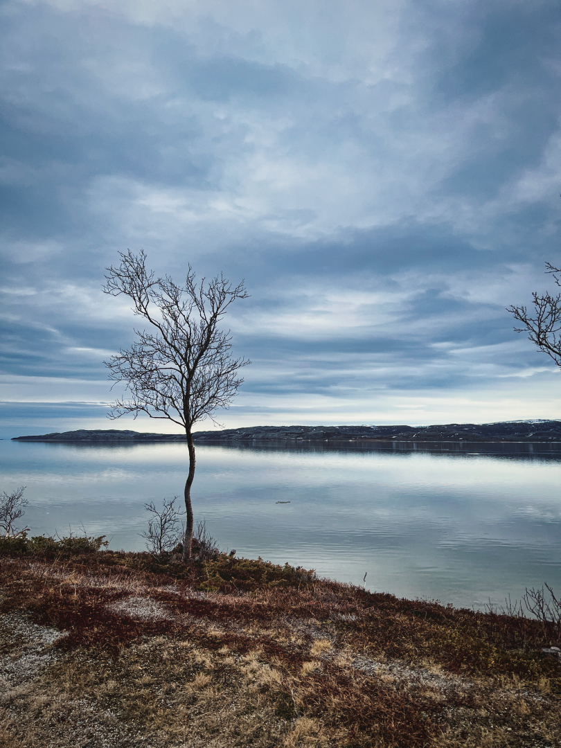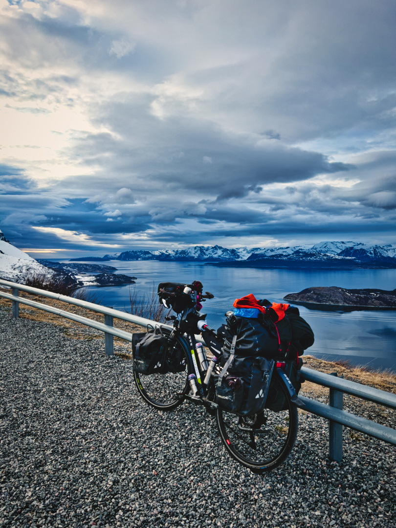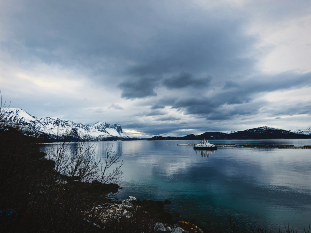 Nach einem kurzen Zwischenstopp und einer Pause, um mich aufzuwärmen, ging es weiter. Der Plan war, auf das Schiff nach Øksfjord zu gelangen. Um 4 Uhr klingelte der Wecker – früh genug, um die Fähre noch zu erreichen. Um 6 Uhr kam das Schiff, und ich war bereit, die Reise fortzusetzen. Doch auch auf dem Schiff fühlte ich mich ein wenig verloren. Der weite Blick auf das offene Meer brachte mir das Gefühl von Heimweh. Als ich vom Schiff stieg und mich wieder auf das Fahrrad schwang, dachte ich nur noch an eins: „Ich will nach Hause.“