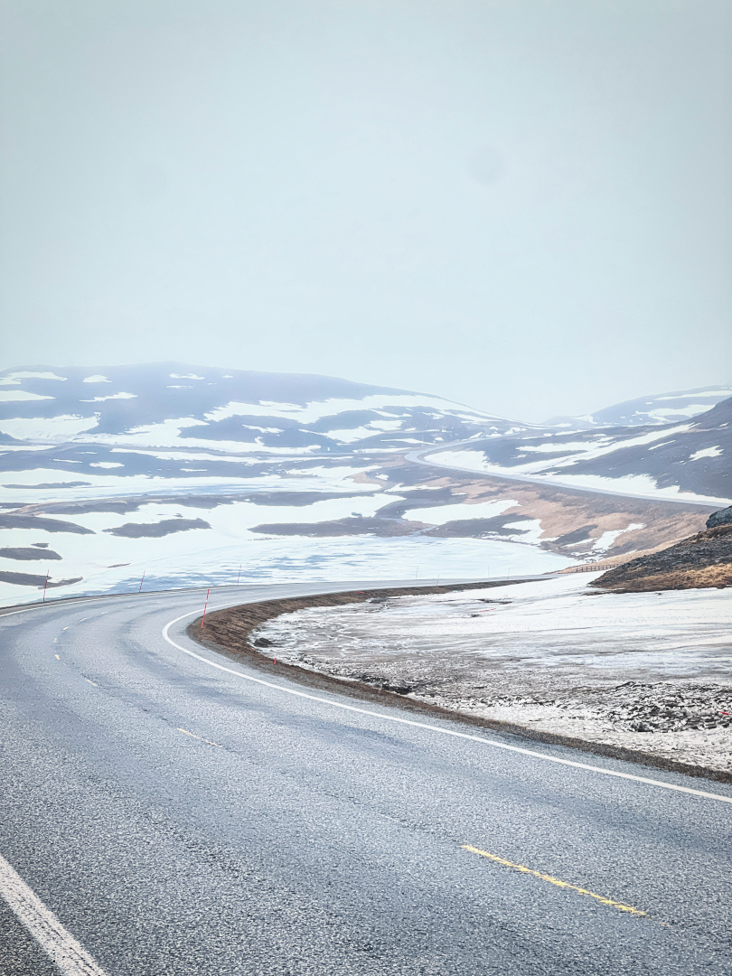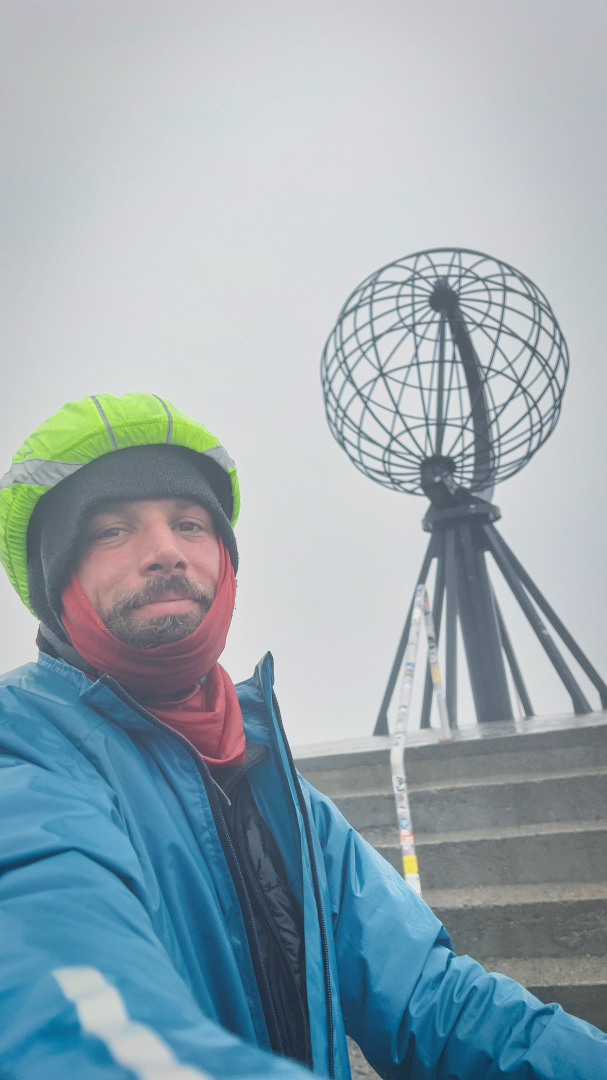 Der Aufstieg zum Nordkap war alles andere als einfach. Ein 9-prozentiger Anstieg über drei Kilometer verlangte mir alles ab. Aber je höher ich kam, desto mehr wurde mir bewusst, wie viel schöner und majestätischer die Natur hier oben war. Der zugefrorene See hinter mir und die verschneiten Landschaften rundum waren atemberaubend. Trotz des Regens und des kalten Windes konnte ich nicht anders, als die Schönheit der Umgebung zu bewundern. Ich kämpfte mich also weiter den Berg hinauf.