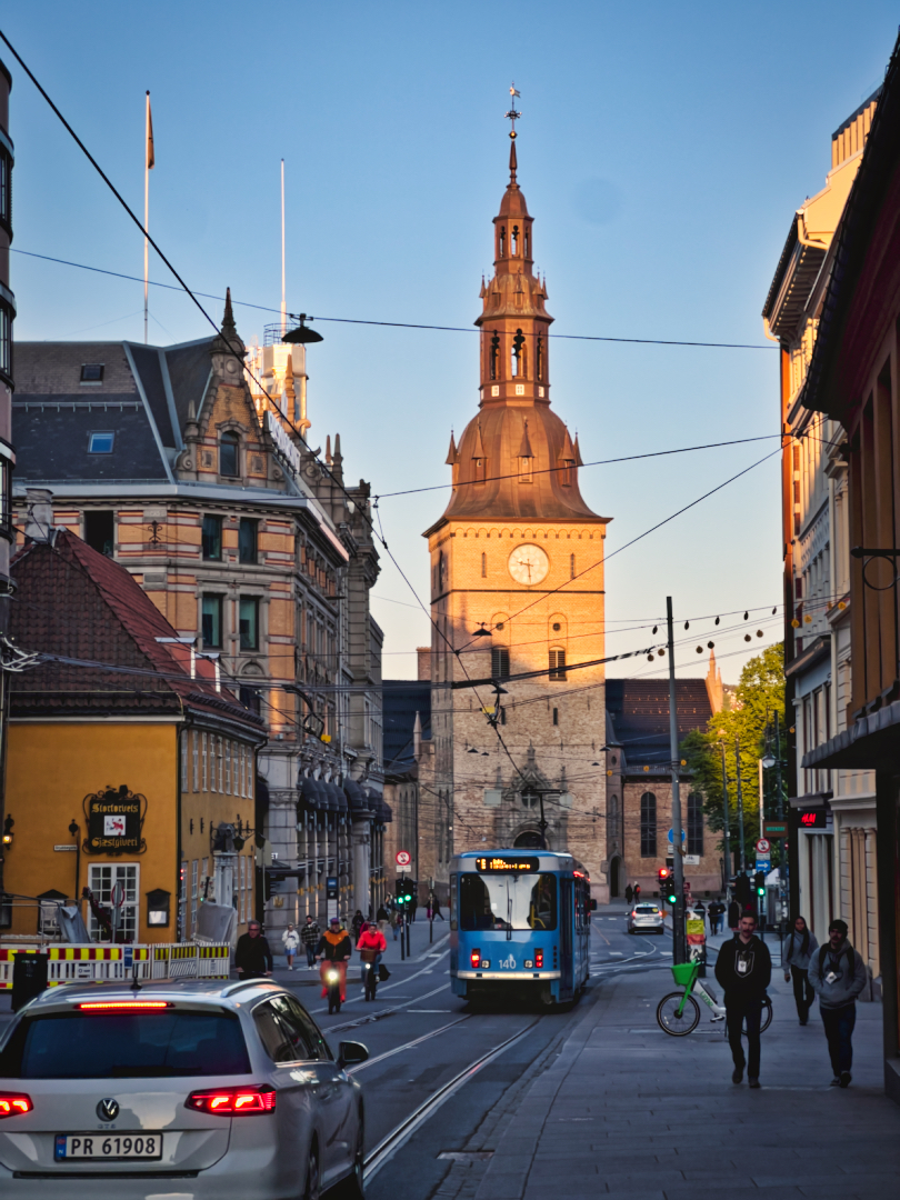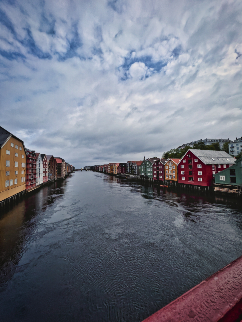 Der nächste Abschnitt der Reise führte mich mit dem Zug nach Trondheim. Im Zug, traf ich ein Pärchen, das ebenfalls mit dem Rad unterwegs war. Während wir am Bahnhof auf den Anschluss warteten, nutzte ich die Gelegenheit für einen kurzen Spaziergang durch die Stadt. Nach all den Tagen auf dem Rad war es eine willkommene Abwechslung, einfach durch die Straßen zu schlendern und das urbane Leben aufzusaugen.