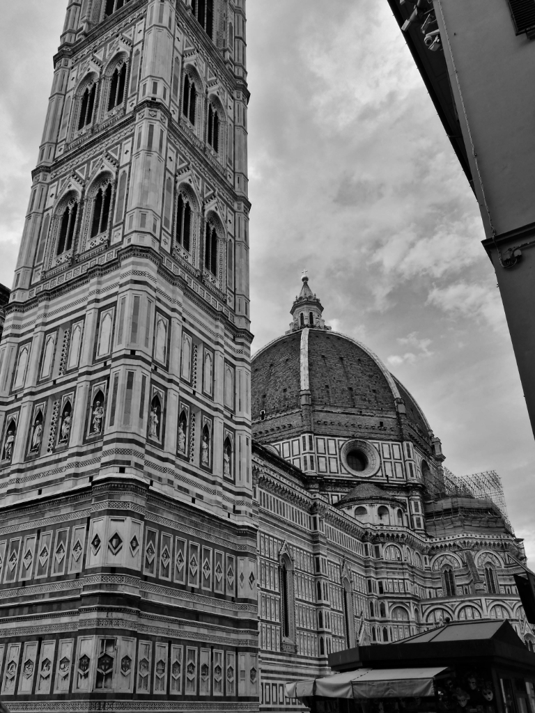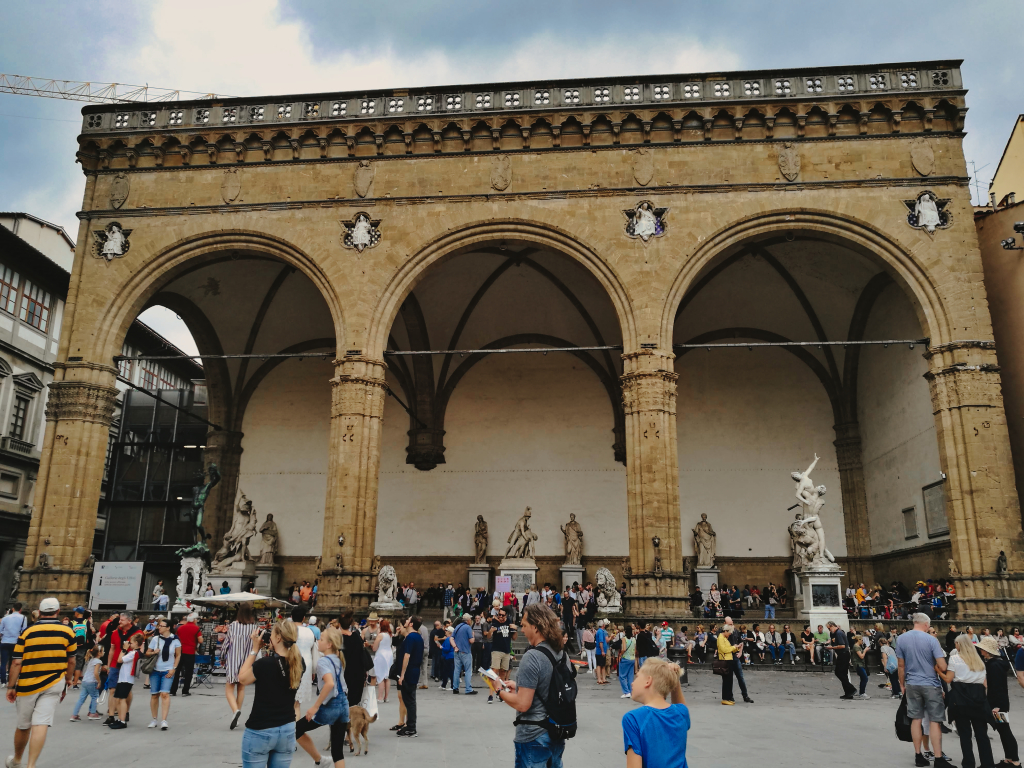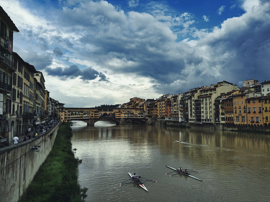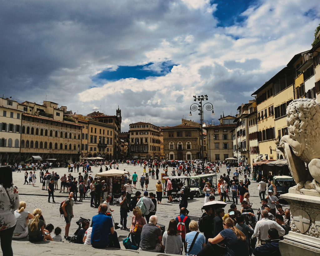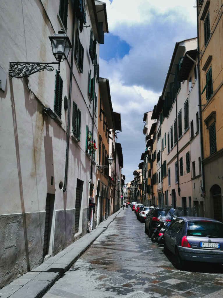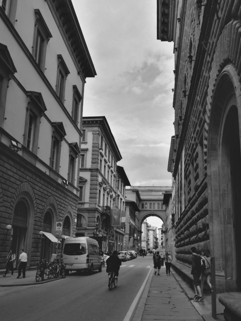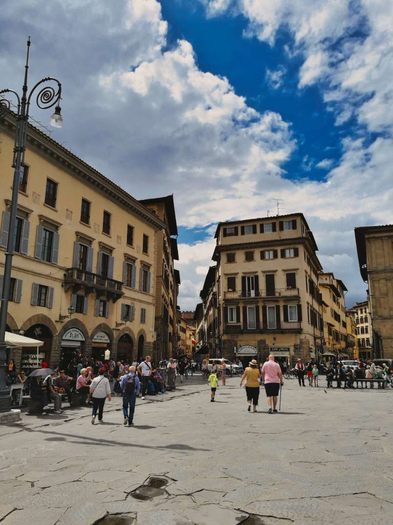 Der nächste Tag begann mit einem ausgiebigen Frühstück auf dem Campingkocher und einer heißen Dusche. Gut gestärkt schwangen wir uns auf unsere Räder und fuhren in die Innenstadt von Florenz. Der Touristische Ansturm war auch in dieser Stadt extrem und wir hörten an jeder Ecke Menschen aus dem deutschsprachigen Raum. Unsere Fahrräder abgestellt und abgesperrt, schlenderten wir durch die wunderschöne Altstadt. Vorbei an der imposanten, Cattedrale di Santa Maria del Fiore, über den überfüllten Platz Piazza di Santa Croce, wo die berümte Basilica di Santa Croce di Firenze zu finden ist. Bis hin zum Markt Mercato del Porcellino, auf dem sehr viel Mode und Leder zum Kauf angeboten wird.