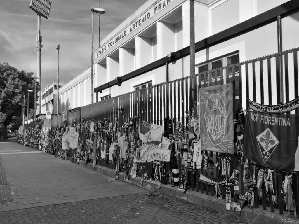 Am nächsten Tag ließ ich meine Begleitung allein weiter ziehen. Ich entschied mich, einen weiteren Tag in Florenz zu bleiben und mir ein Bett im Hostel Ostello Europa Villa Camerata (Mittlerweile dauerhaft geschlossen!) zu mieten. Eine sehr alte Villa mit einem ganz eigenen Charme, dem man das Alter ansah. Nach dem Check-in und dem Laden meines Handys zog ich erneut los. Ich lief am Fußballstadion von Florenz vorbei und wunderte mich über die vielen Schale und Flaggen, die am Stadionzaun hingen. Mal wieder recherchierte ich im Internet und fand heraus, dass es sich hierbei um eine Art Gedenkstätte für den plötzlich verstorbenen Kapitän des AC Florenz, David Astori, handelte.