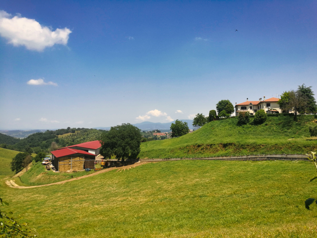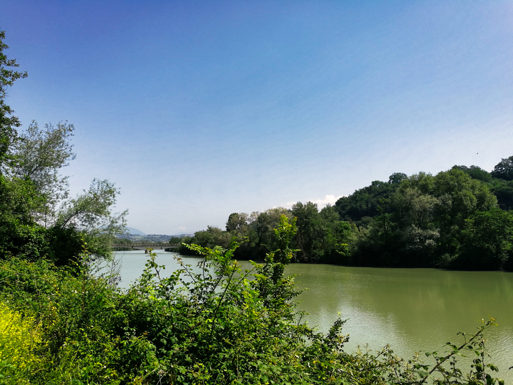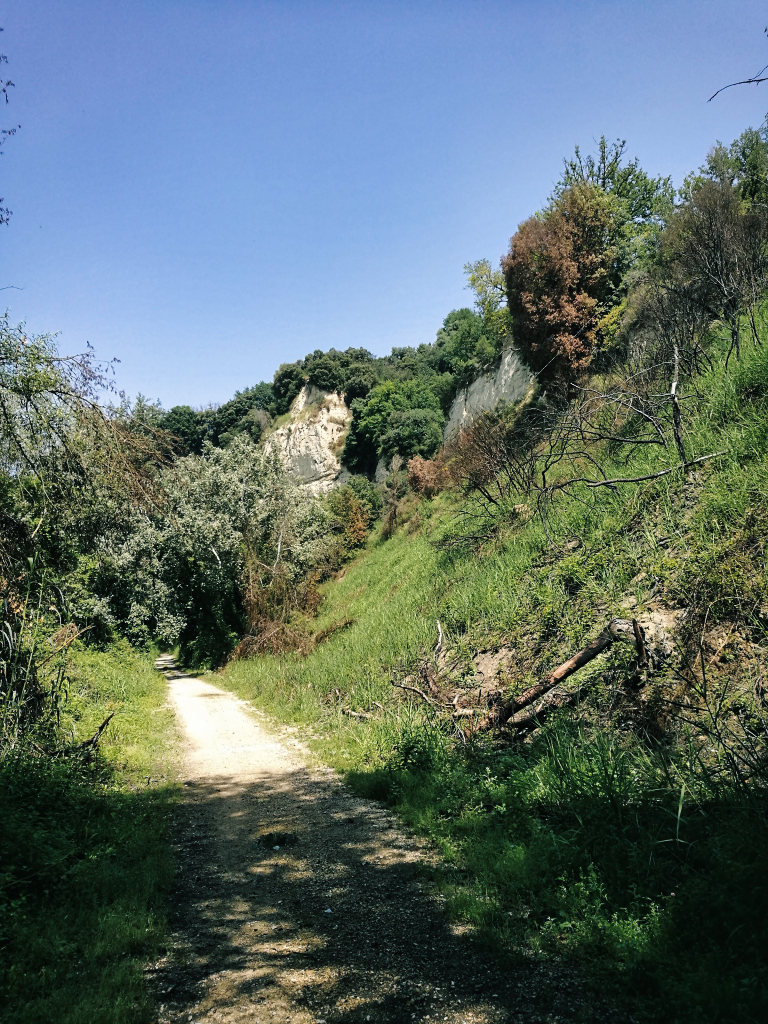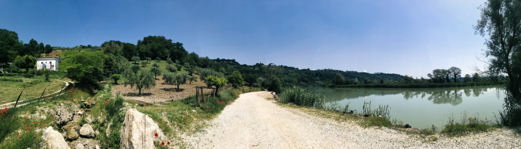 Es dauerte nicht lange, bis ich den Tiber, welcher sich durch Rom bis ins Tyrrhenische Meer schlängelt, erreichte. Diesen folgte ich für etwa acht Kilometer und es ging sehr entspannt voran. Als mich mein Weg jedoch wieder weg vom Tiber, die Berge hinauf führte, und ich das Rad abermals schieben musste, merkte ich eine leichte Frustration in mir aufkommen. Die Sonne schien mal wieder erbarmungslos und ich suchte mir alle paar hundert Meter Schatten spendenden Schutz unter den am Straßenrand stehenden Bäumen. Ich kam nur sehr schleppend voran.